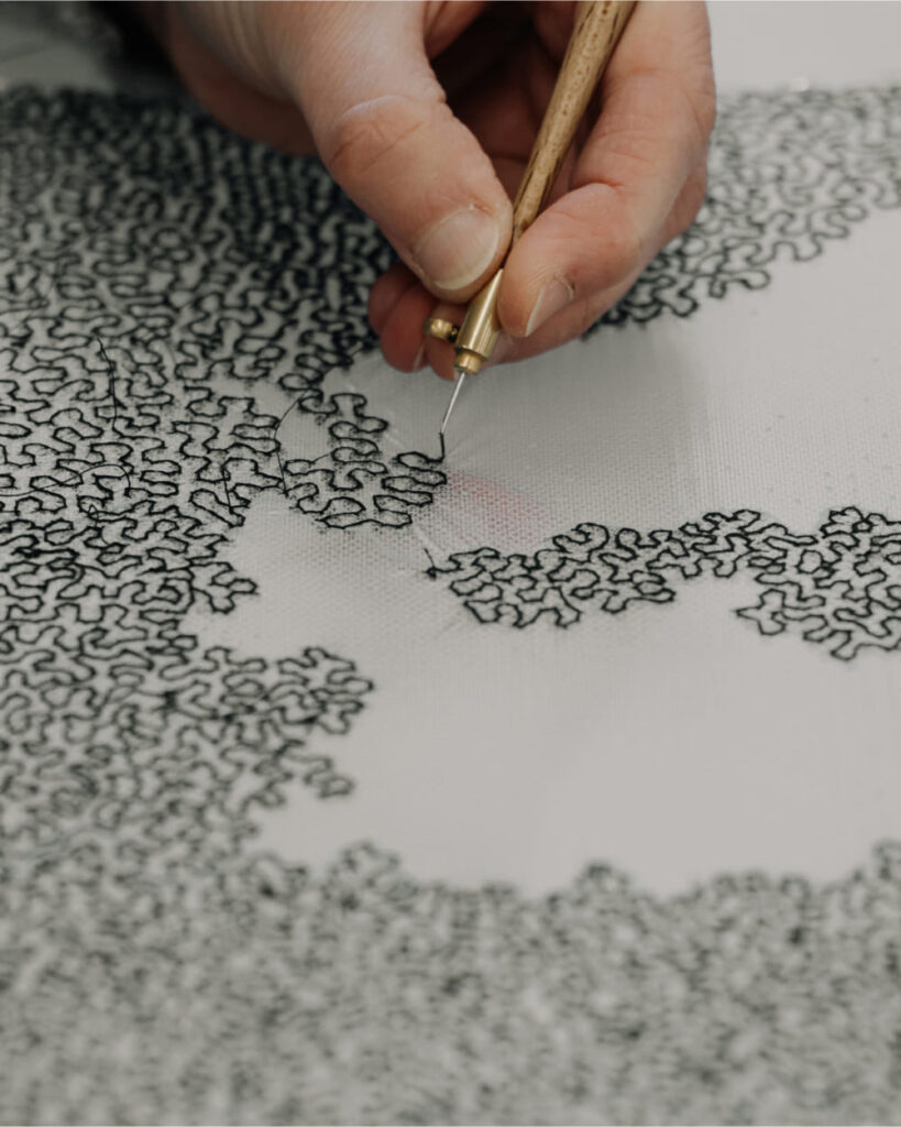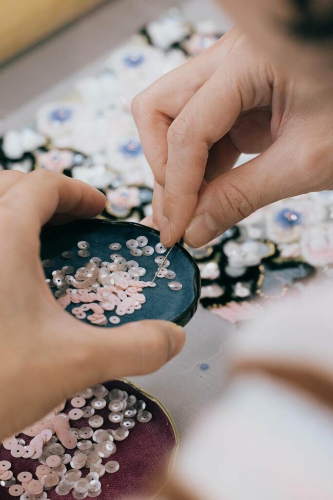 le19M ist mehr als ein Ateliergebäude – es ist ein kreativer Mikrokosmos, der elf Maisons d’art vereint. Darunter renommierte Werkstätten wie Lesage (Stickerei), Lemarié (Feder- und Blumenkunst), Maison Michel (Hutmacherei), Goossens (Goldschmiedekunst) oder Massaro (Schuhhandwerk), in denen insgesamt rund 700 Kunsthandwerker:innen tätig sind. Ihr gemeinsames Ziel: die Haute Couture durch meisterhaftes Handwerk in die Zukunft zu führen.