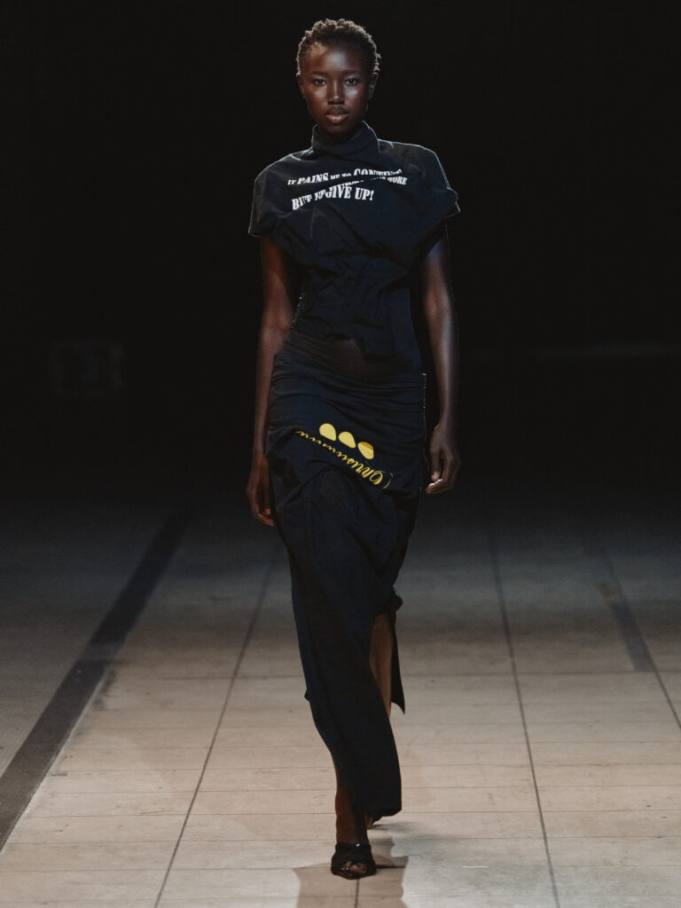 Deviant Defiant, ihre neueste Kollektion, ist vom kulturellen Topos der weiblichen Bösewichtin sowie von Themen wie Willensstärke, Mythologie, Anderssein und Weiblichkeit inspiriert. Sie spiegelt die Weigerung wider, sich von gesellschaftlichen Zwängen einengen zu lassen, und deutet „böse“ Frauen nicht als warnende Beispiele, sondern als Verkörperungen von Handlungsmacht und Stärke.